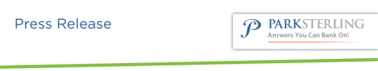 Park Sterling Corporation, the holding company for Park Sterling Bank, is headquartered in Charlotte, North Carolina. Park Sterling, a regional community-focused financial services company with $3.3 billion in assets, is the largest community bank headquartered in the Charlotte area and has 54 banking offices stretching across the Carolinas and into North Georgia, as well as in Richmond, Virginia. The bank serves professionals, individuals, and small and mid-sized businesses by offering a full array of financial services, including deposit, mortgage banking, cash management, consumer and business finance, capital markets and wealth management services with a commitment to “Answers You Can Bank OnSM.” Park Sterling prides itself on being large enough to help customers achieve their financial aspirations, yet small enough to care that they do. Park Sterling is focused on building a banking franchise that is noted for sound risk management, strong community focus and exceptional customer service. For more information, visit www.parksterlingbank.com. Park Sterling Corporation shares are traded on NASDAQ under the symbol PSTB.