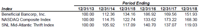 On April 14, 2016, the Company completed the acquisition of Conestoga Bank. Pursuant to the terms of the Stock Purchase Agreement, dated October 21, 2015, between the Company, Conestoga Bancorp, Inc. (Conestoga) and Conestoga Bank, the Company acquired Conestogas ownership interest in Conestoga Bank for a cash payment of $105.0 million and subsequently merged Conestoga Bank with and into Beneficial Bank. The results of Conestoga Banks operations are included in the Companys unaudited condensed Consolidated Statements of Income for the period beginning on April 15, 2016, the date of the acquisition, through December 31, 2018. The acquisition of Conestoga Bank increased the Companys market share in southeastern Pennsylvania and provided Beneficial Bank with new branches in Blue Bell, Chester Springs, Feasterville, Media, Wayne and Philadelphia, Pennsylvania.