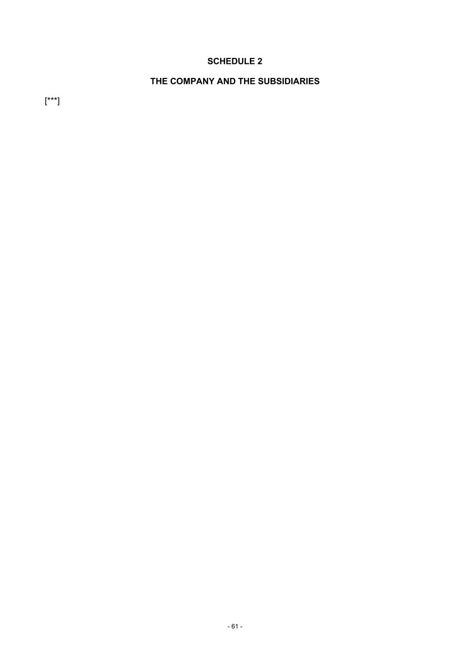 - 61 - SCHEDULE 2 THE COMPANY AND THE SUBSIDIARIES [***]