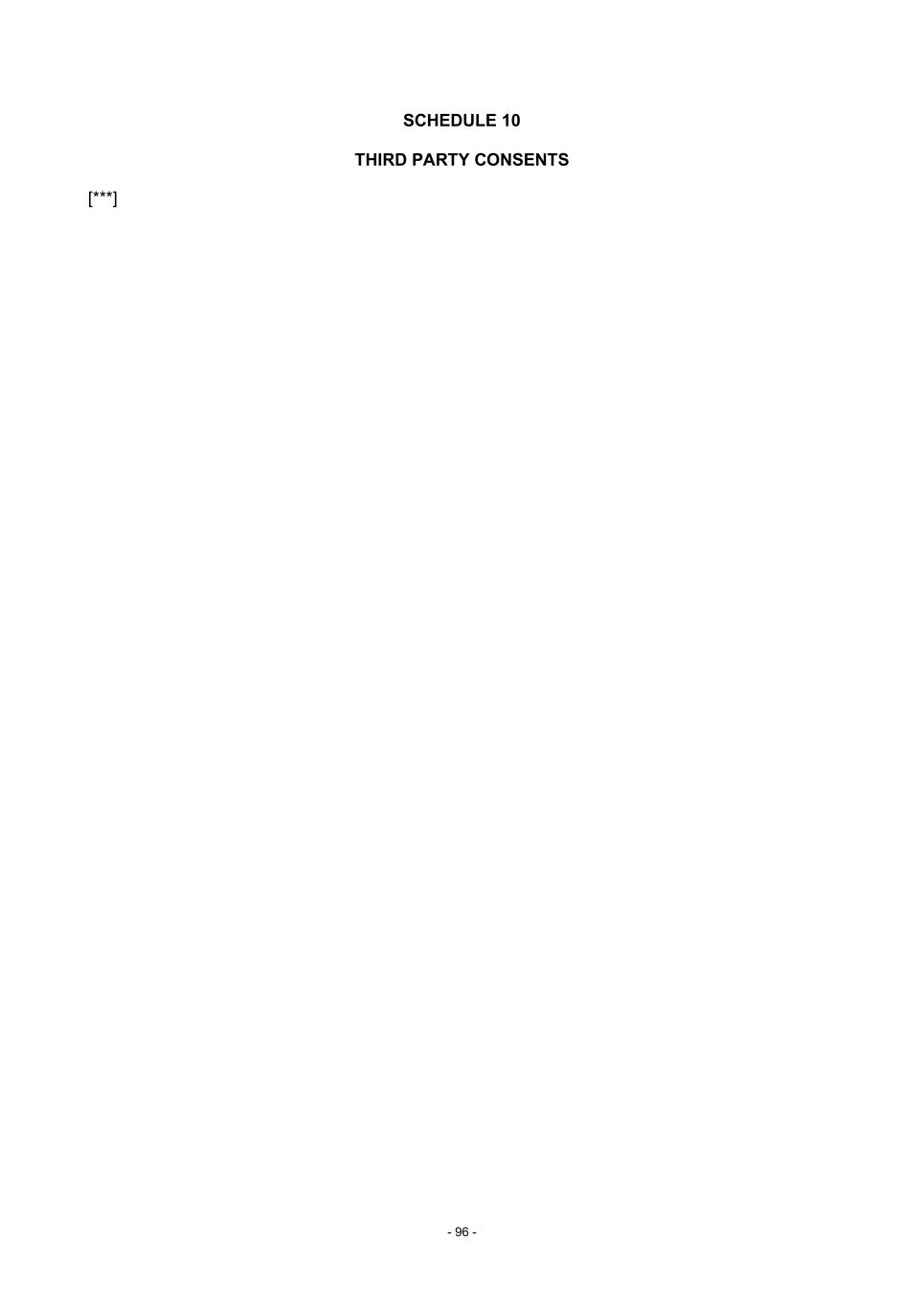 - 96 - SCHEDULE 10 THIRD PARTY CONSENTS [***]
