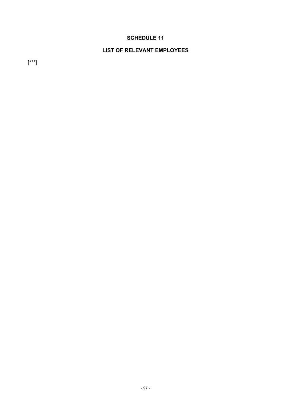 - 97 - SCHEDULE 11 LIST OF RELEVANT EMPLOYEES [***]