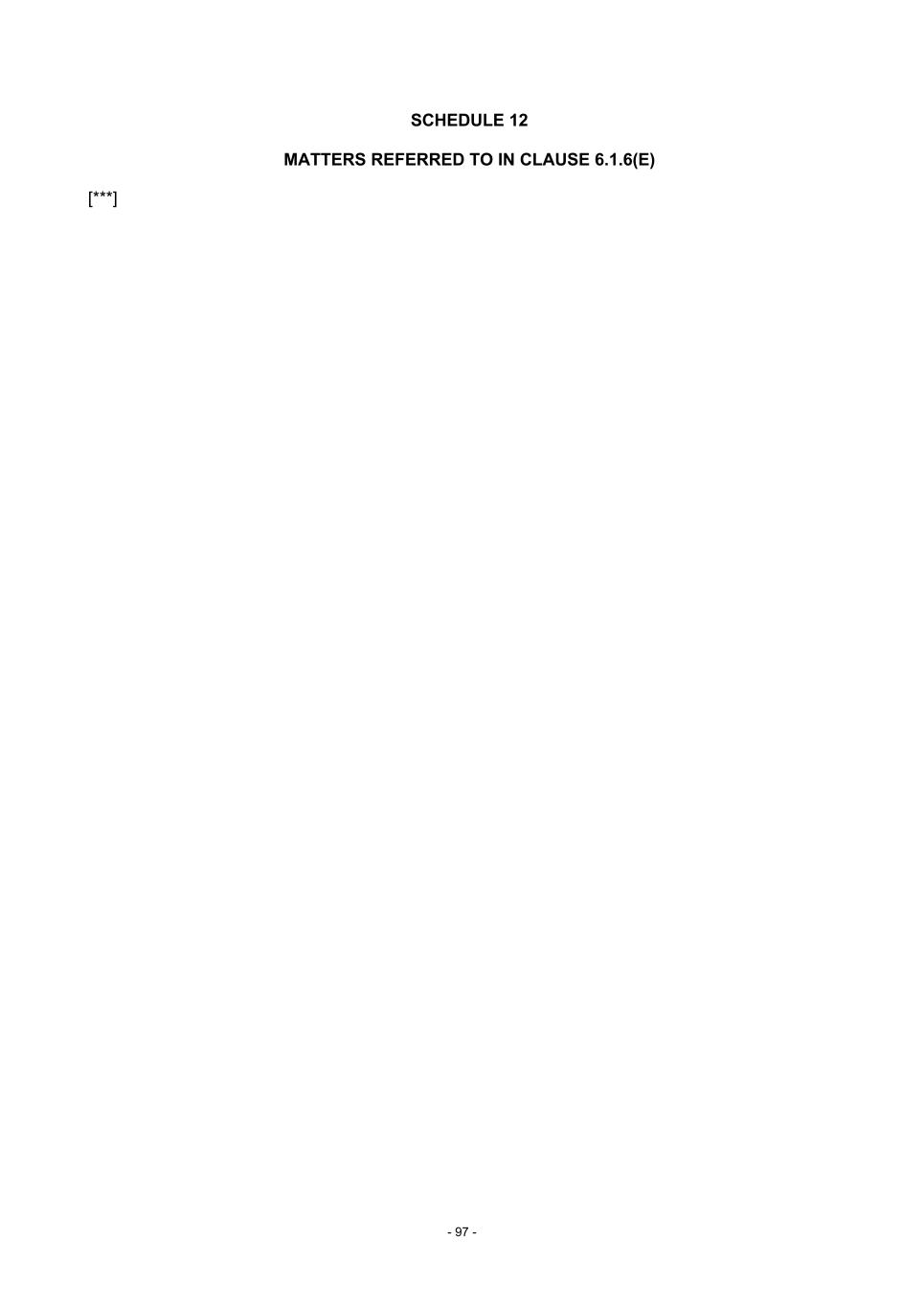 - 97 - SCHEDULE 12 MATTERS REFERRED TO IN CLAUSE 6.1.6(E) [***]
