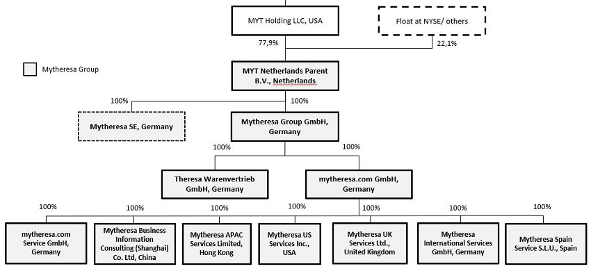 We have historically conducted our business through Mytheresa Group GmbH (formerly named: NMG Germany GmbH), a German limited liability company (Gesellschaft mit beschränkter Haftung) with its statutory seat in Munich, registered with the commercial register of the local court of Munich under HRB 211727 (“MGG”), and its subsidiaries. MGG is wholly owned subsidiary of the issuer, MYT Netherlands Parent B.V., a private company with limited liability under the laws of the Netherlands (besloten vennootschap met beperkte aansprakelijkheid) and registered with the Trade Register of the German Chamber of Commerce under number 261084 (“MYT Netherlands”). Except where the context otherwise requires or where otherwise indicated, the terms “Mytheresa,” the “Company,” “we,” “us,” “our,” “our company” and “our business” refer to MYT Netherlands together with MGG and its other consolidated subsidiaries as a consolidated entity; the term “MYT Netherlands” or “the issuer” refers to MYT Netherlands as a stand-alone company; and the term “MYT Holding” refers to MYT Holding LLC, a Delaware limited liability company, as a stand-alone company and, prior to the public offering, the sole shareholder of MYT Netherlands.